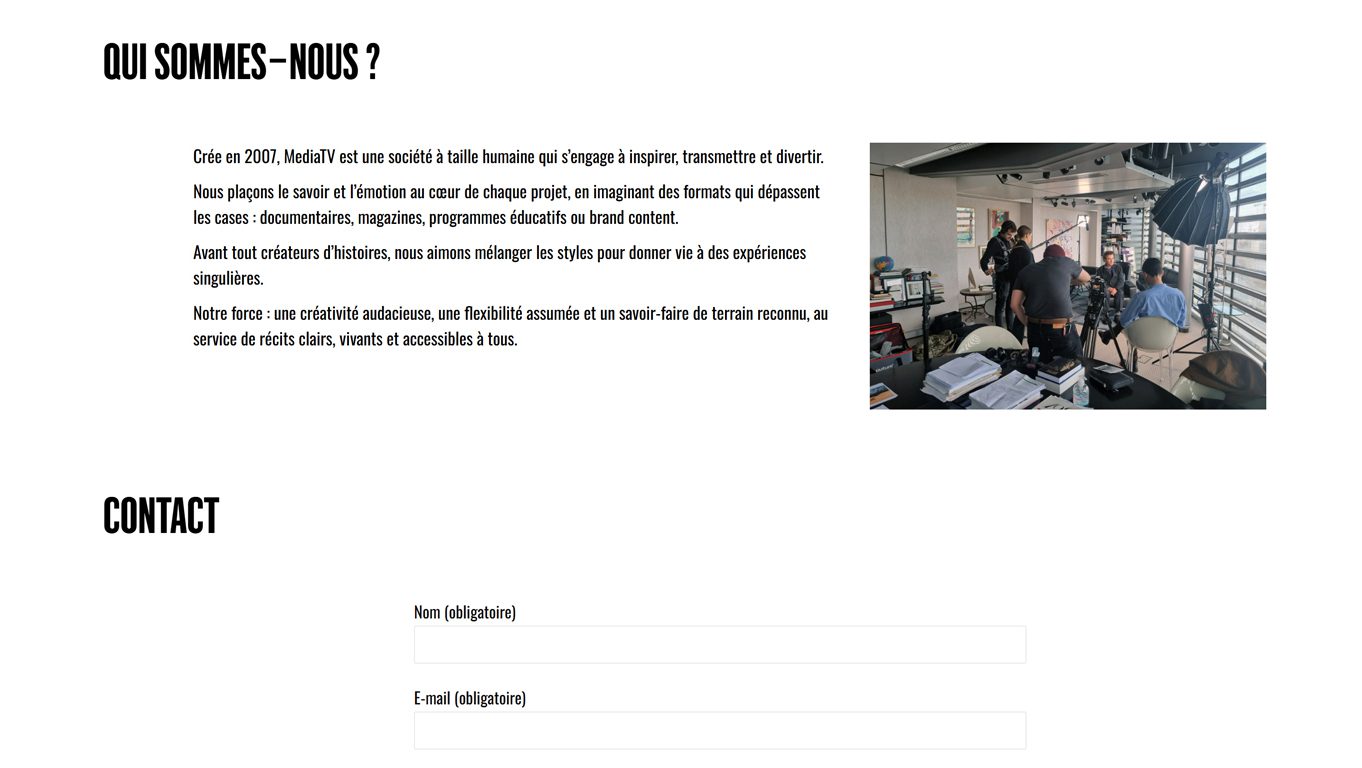 Site web de présentation de la société de production audiovisuelle MediaTV.